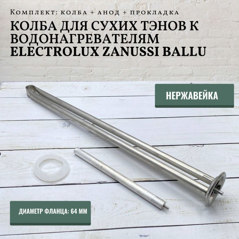 ТЭН для водонагревателя Haier/ Leran 2000W (L240мм, фланец 90х90мм)